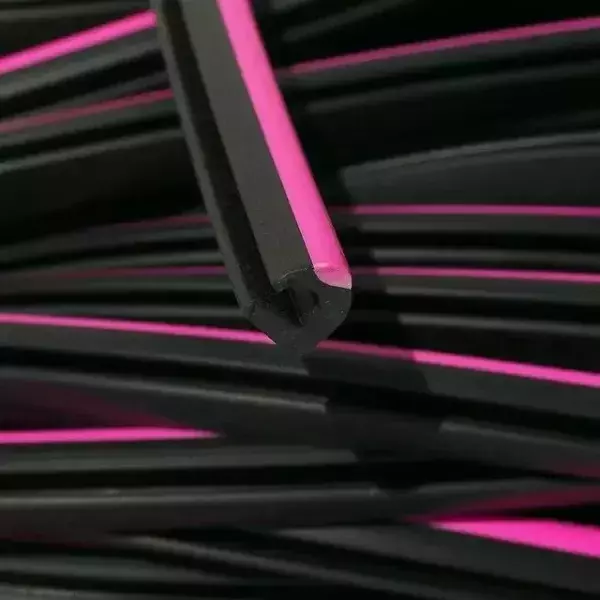 El burlete negro con fucsia en forma de “U” es la solución ideal para colocar como marco protector en espejos de 3 y 4 mm de espesor. Fabricado en PVC de 85 Shore, garantiza la resistencia y durabilidad necesarias para trabajos profesionales en vidriería y decoración.